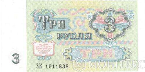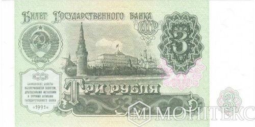 Банкнота (Бона) 3 рубля 1991 року