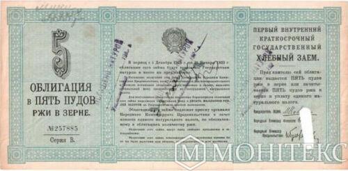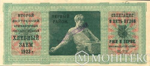 Облігація 5 пудів жита в зерні 1 район 1923 року