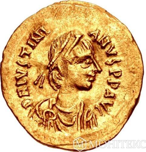 Золота монета Візантії треміссіс, Флавій Петро Саватій Юстиніан I, 527-565 рік