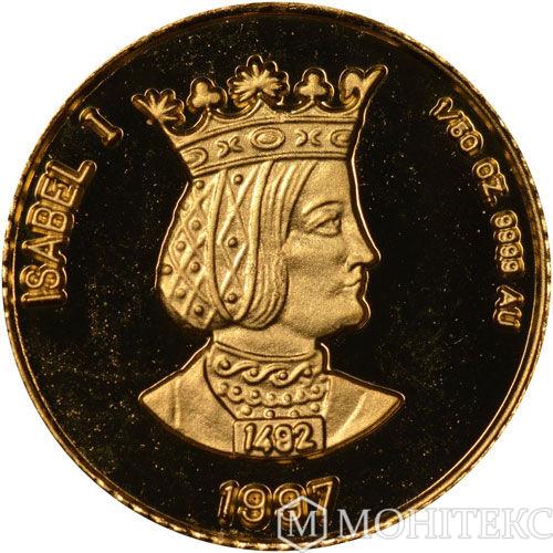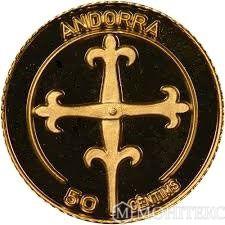 Золота монета 50 сентимів 1997 року. Андорра. Королева Кастилії Ізабелла 1