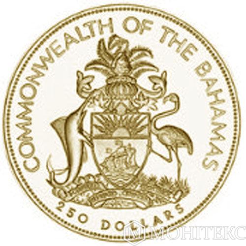 Золота монета 250 доларів 1985 року. Багамські острови. Королева Єлизавета II