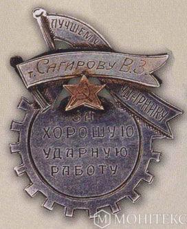 Нагрудный знак «Лучшему ударнику за хорошую ударную работу». 1935 г.