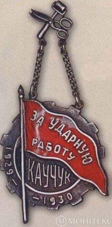 Нагрудный знак «За ударную работу». Завод «Каучук». 1930 г.