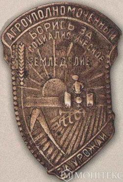 Нагрудный знак «Агроуполномоченный. Борись за социалистическое земледелие. За урожай» 30-е гг.