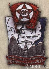 Нагрудный знак «Почетному строителю Комсомольска. V лет». 1937 г.
