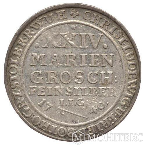 Серебряная монета 24 Мариенгроша 1740 год. Штольберг