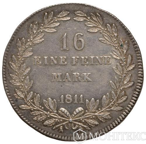Серебряная монета 1 Талер (16 марок) 1811 год. Изенбург