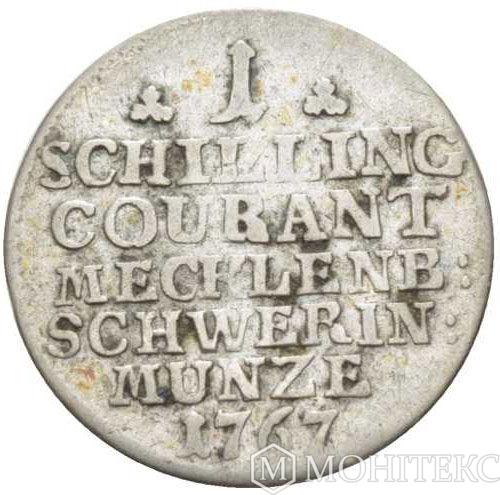 Серебряная монета 1 Шиллинг 1767 год. Мекленбург-Шверин