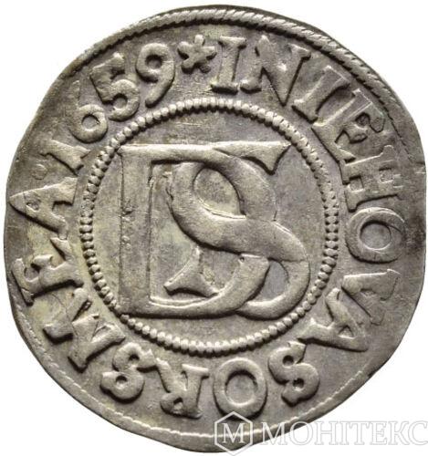Серебряная монета 2 Шиллинга 1659 год. Шведская Померания