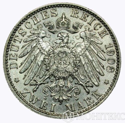 Серебряная монета 2 Марки 1908 год. Бавария