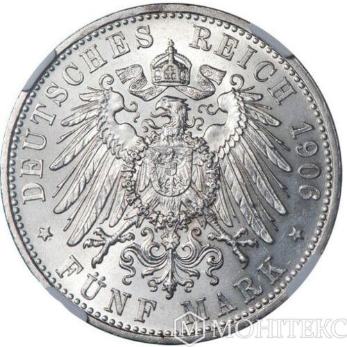 Серебряная монета 5 Марок 1906 год. Бавария