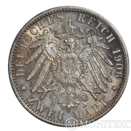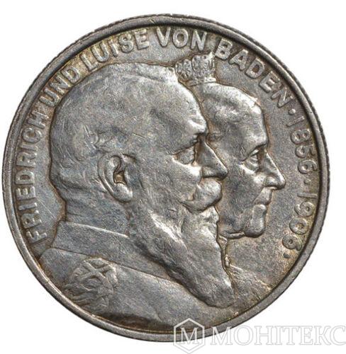 Серебряная монета 2 Марки 1906 год. Баден. Фридрих и Луиза. 1856-1906. Золотая свадьба