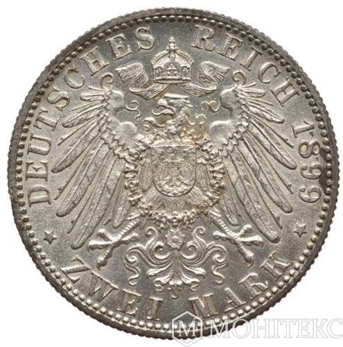 Серебряная монета 2 Марки 1899 год. Вюртемберг