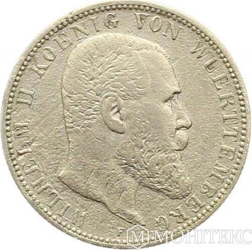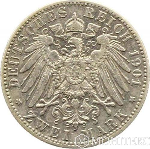 Серебряная монета 2 Марки 1901 год. Вюртемберг