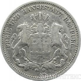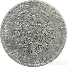 Серебряная монета 2 Марки 1877 год. Гамбург