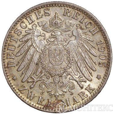 Серебряная монета 2 Марки 1905 год. Гамбург