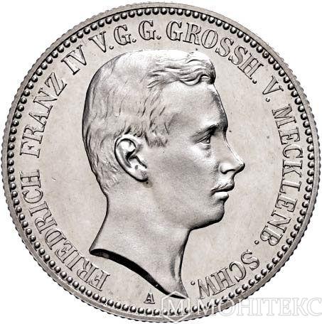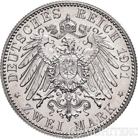 Серебряная монета 2 Марки 1901 год. Мекленбург-Шверин