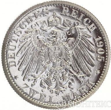 Серебряная монета 2 Марки 1905 год. Мекленбург-Штрелиц