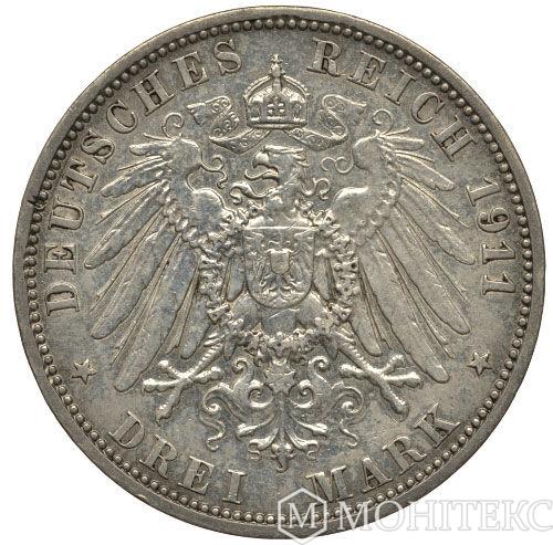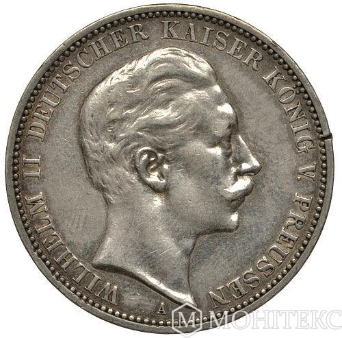 Серебряная монета 3 Марки 1911 год. Пруссия