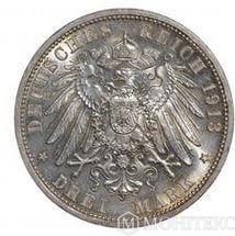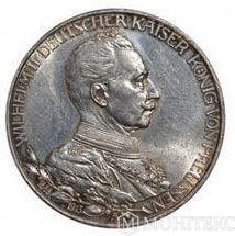 Серебряная монета 3 Марки 1913 год. Пруссия. 25 лет правления Вильгельма 2-го