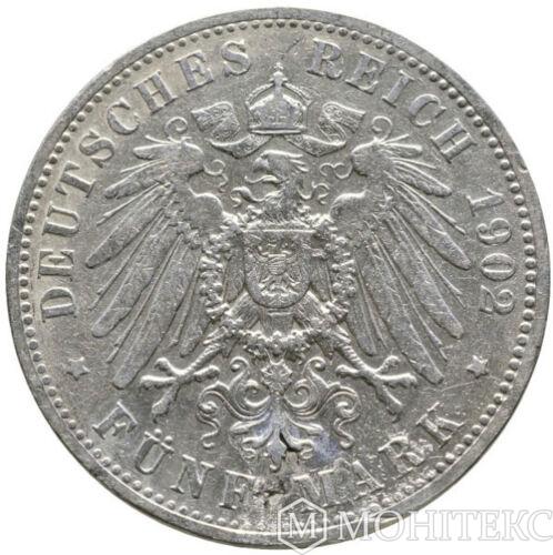 Серебряная монета 5 Марок 1902 год. Пруссия