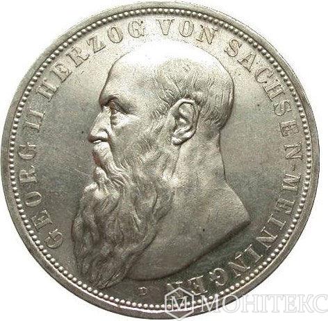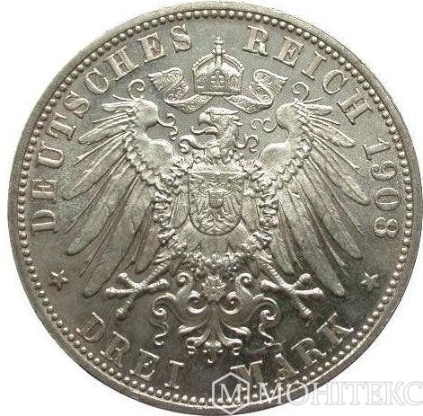 Серебряная монета 3 Марки 1908 год. Саксен-Мейнинген