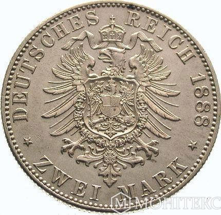 Серебряная монета 2 Марки 1888 год. Саксония