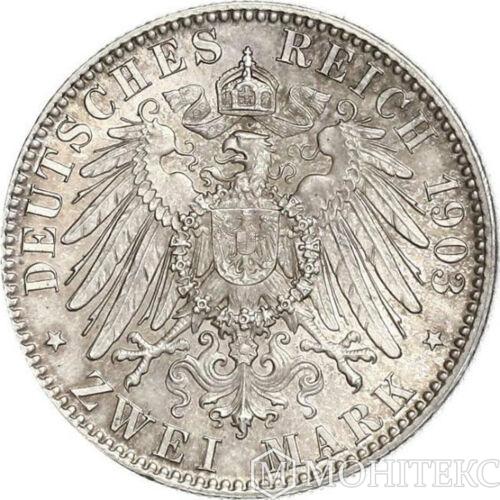 Серебряная монета 2 Марки 1903 год. Саксония