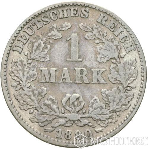 Серебряная монета 1 Марка 1880 год. Германия