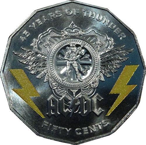 Памятная монета 50 центов 2018 года, Австралия, AC/DC - 45 лет грома