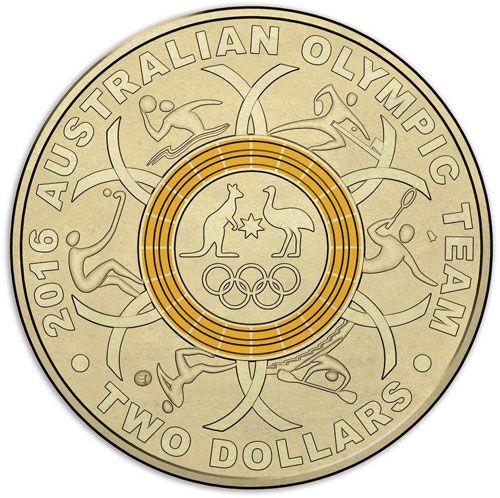 Памятная монета 2 доллара 2016 года, Австралия, Олимпийские игры в Рио-де-Женейро, желтый