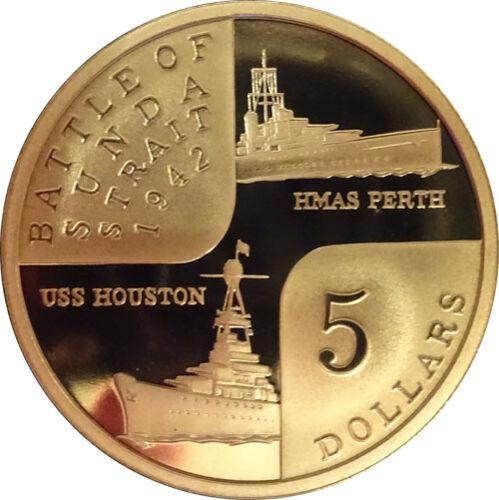 Памятная монета 5 долларов 2002 года, Австралия, 60 лет битве в Зондском проливе, Памяти потопленных крейсеров