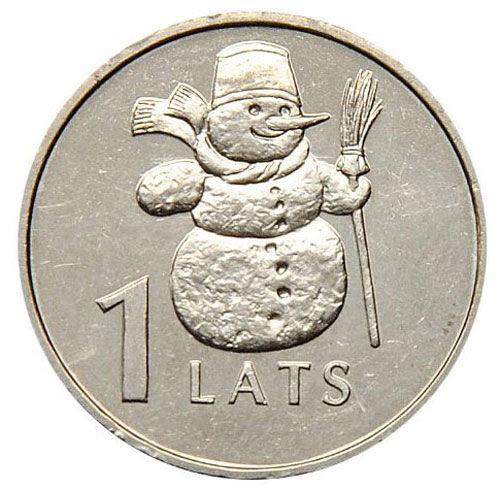 Памятная монета 1 лат 2007 год, Латвия, Снеговик