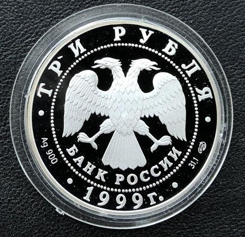 3 рубля 1999 года. Юрьев монастырь. Новгород. СПМД