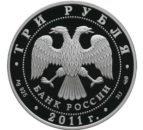 3 рубля 2011 года. 350-летие вхождения Бурятии в состав России. ММД