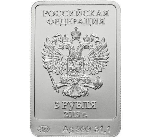 3 рубля 2013 года. XXII Олимпийские зимние игры 2014 Сочи. Зайка 35х23 мм. СПМД