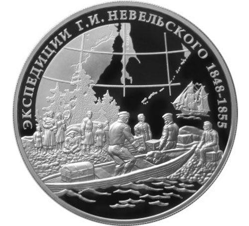 3 рубля 2013 года. Экспедиции Г.И. Невельского на Дальний Восток. ММД