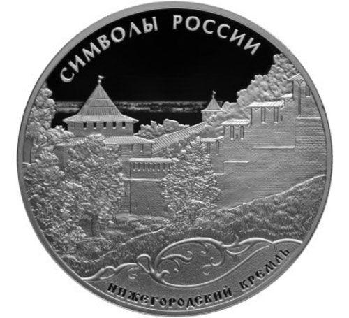 3 рубля 2015 года. Символы России. Нижегородский кремль. СПМД