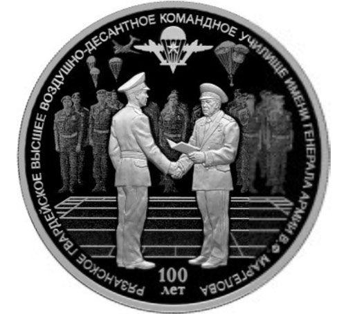 3 рубля 2018 года. 100-летие Рязанского воздушно-десантного училища. СПМД