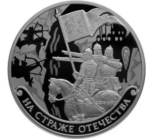 3 рубля 2018 года. На страже Отечества. Воины в доспехах. СПМД
