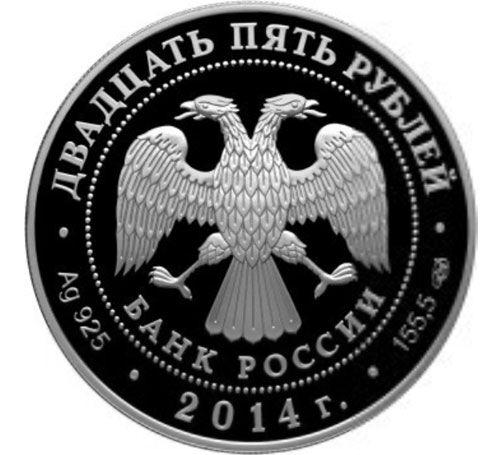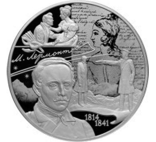 25 рублей 2014 года. 200-летие со дня рождения М.Ю. Лермонтова. СПМД