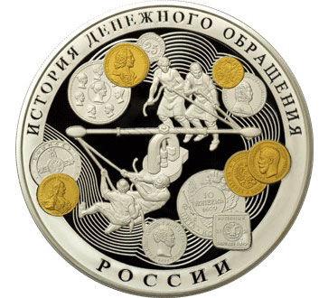 100 рублей 2009 года. История денежного обращения России (позолота). ММД