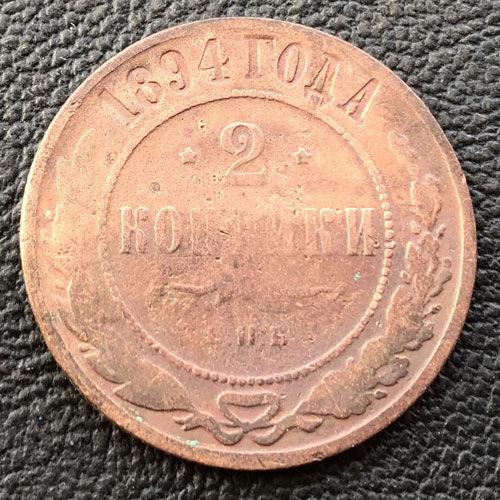 2 копейки 1894 года СПБ, Александр 3, VF
