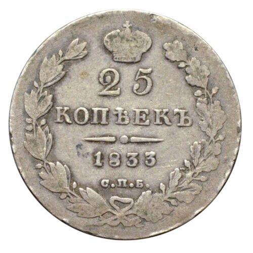 25 копеек 1833 года СПБ НГ, Николай I, VF