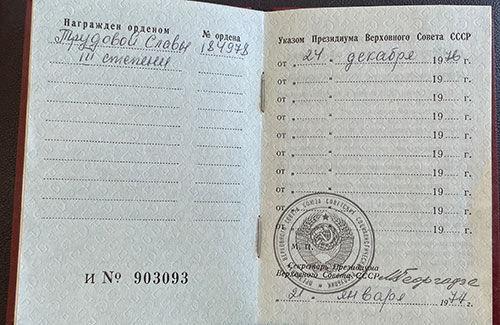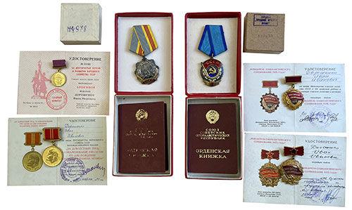 Комплект: Орден Трудового красного знамени, Трудовой Славы + медали