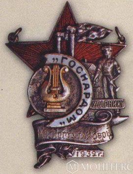 Нагрудний знак «Ударнику» . ГОСНАРДОМ. 1932 р.