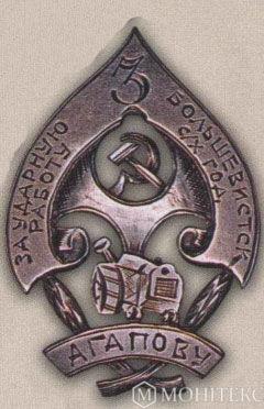 Нагрудний знак «за ударну роботу. 3-й більшовицький с / г рік» . 30-ті рр.
