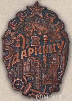 Нагрудний знак «Ударнику. П'ятирічка в 4 роки» 30-і рр.