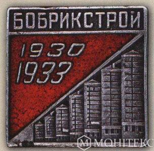 Нагрудний знак За завершення будівництва Бобкірстроя. 1933 р.
