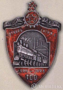 Нагрудний знак на честь 100-річчя Пролетарського заводу Жовтневої залізниці. 1925 р.